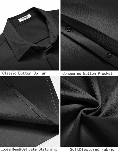 COOFANDY Men’s Casual Short Sleeve Button Down Summer Beach Shirt Lightweight Textured Wrinkle Free Stretch Shirts