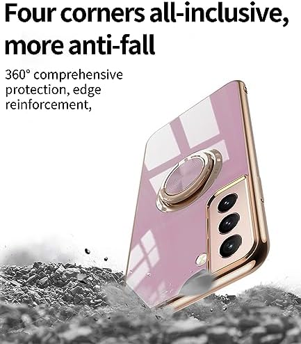 for Samsung Galaxy S21 5G Case, with 2 Screen Protector, Built-in 360° Ring Holder Magnetic Stand, Luxury Electroplated Plating Edge Shockproof Protective Phone Cover, Purple