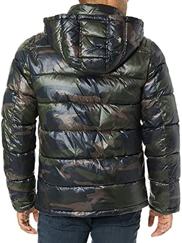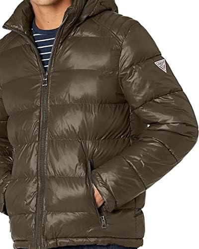 GUESS mens Mid-weight Puffer Jacket With Removable Hood