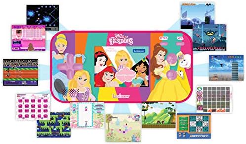 150-in-1: 10 Disney Princess games + 140 classic games : sport, action, logic, adventure, platforms and much more! Hunt monsters, escape dangerous zones, score goals, and win wild races, hours of fun for everyone! 2.5’’ LCD colour screen (6,35 cm) 8-bit CPU with 16-bit graphics. Speaker and volume bouton Power supply: 3 x AAA/LR03 batteries (not included) Compact size to bring it everywhere! A great design with many Disney Princesses : Cinderella, Rapunzel, Bella and Ariel!