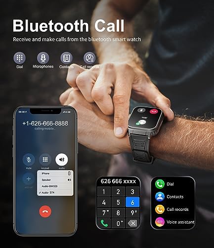 📱【1.96″ HD Screen & DIY Watch Faces 】The Men’s Military Smartwatch is equipped with a large 1.96″ HD screen with a resolution of 240×286 with a full range of viewing angles. Tap or swipe on the full touch screen for a smooth experience with millisecond operation response. Android watch comes with 12 dials, 100+ dials are available on the APP, also you can DIY your own personalized dial. A wide range of dials for a diverse aesthetic, which can be matched and used at will.