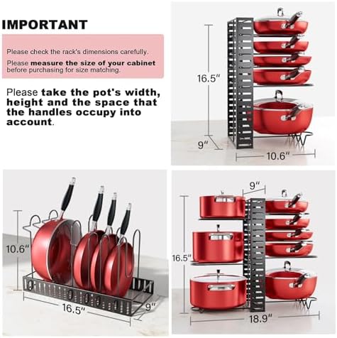 MUDEELA Pots and Pans Organizer Rack under Cabinet, 8-Tier Kitchen Organizers and Storage Pot Racks, Adjustable Pot Organizers inside Cabinet with 3 DIY Methods