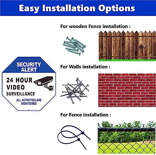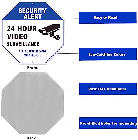 🔹 Premium Materials: This 24 Hour Video Surveillance Sign is used first-class materials, has a great water and chemical resistance. It is made of rust free aluminum, and will stay as good as new even after many years of indoor and outdoor use.