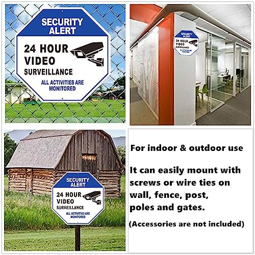 Security Alert – 24 Hour Video Surveillance Sign – 10″ x 10″ All Activities Are Monitored Sign- Security Warning Metal Signs for Home, Business, CCTV Security Camera, Indoor Outdoor Use (Blue)