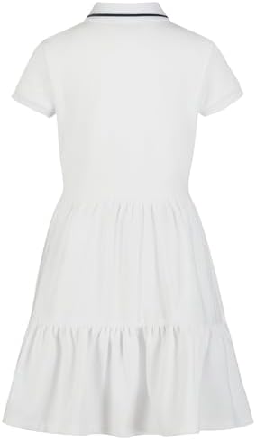 Tommy Hilfiger Girls’ Short Sleeve Polo Dress, White/Tiered, 12-14