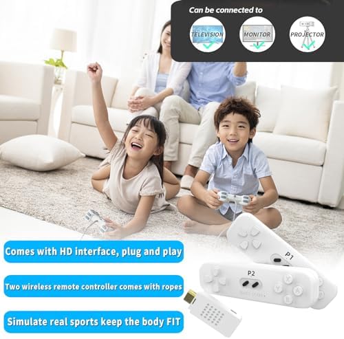 🙌【Sensory Wireless Gaming Machine】 The Sensory Two player Gaming Machine includes two portable 2.4G wireless game controllers, which transmit signals without blind spots and respond quickly and accurately. The sensing distance can reach up to 10 meters, allowing for free use. Free wrist strap for a stable and comfortable gaming experience. Body feeling games not only bring joy to gaming, but also help maintain body shape and health, killing two birds with one stone. Please note that the AA batt