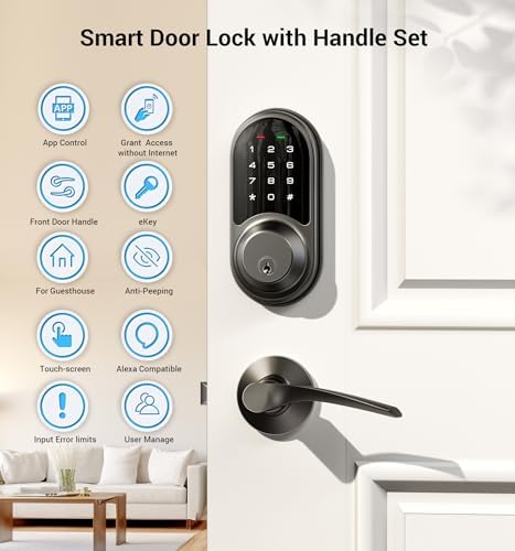 Veise Smart Locks for Front Door, 2 Lever Handle Set, Keyless Entry Deadbolt, App Control, Electronic Digital Touchscreen Keypad, Auto Lock, IP54 Waterproof, Easy Installation, Matte Black
